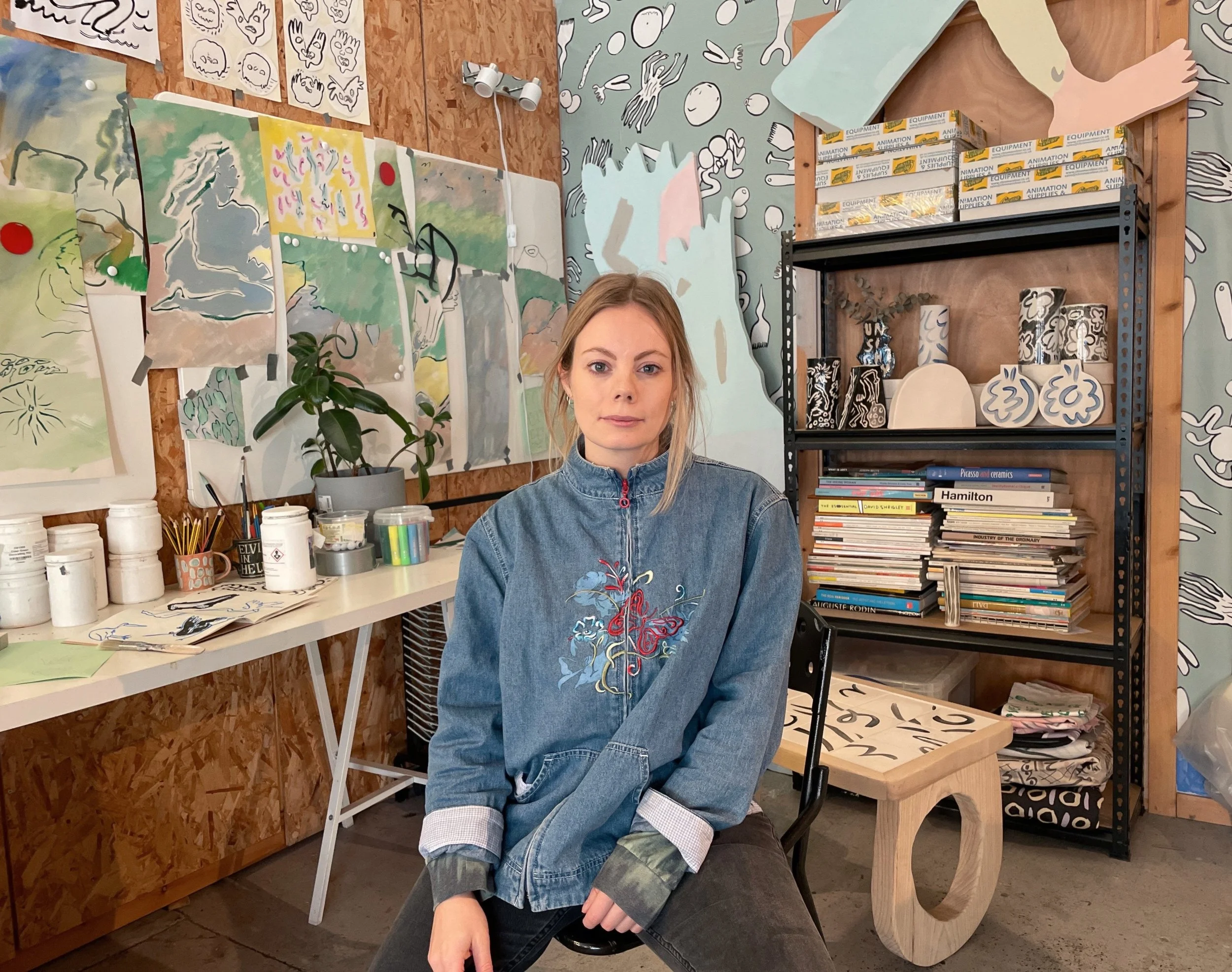 Sarah’s drawing practice works across animation, textiles, ceramics, sculpture and print. Combining her interests in making, storytelling and working with other people, she creates artwork for exhibitions, the public realm and the home.